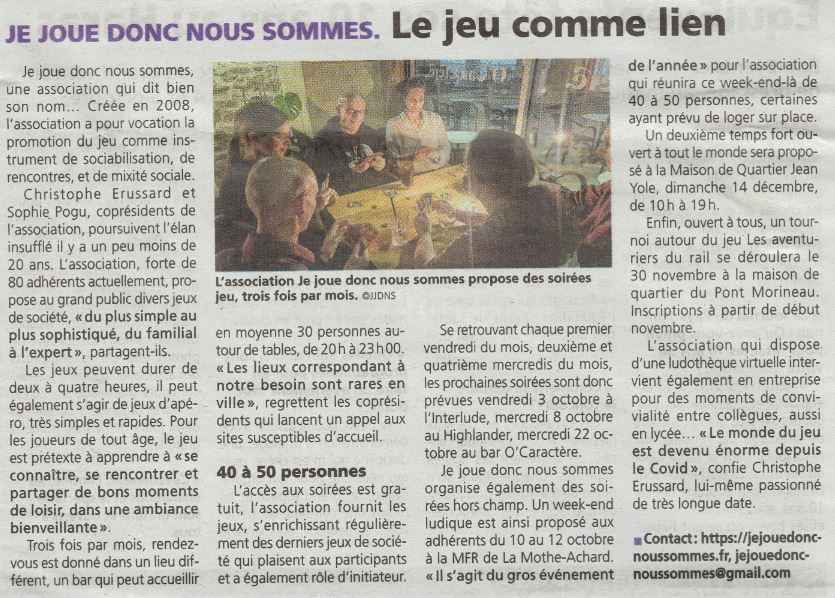 - une communication régulière et gratuite réalisée par JJDNS :